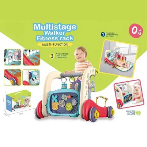 Комплектація 3в1: Ходунки, ігровий килимок, бізіборд.