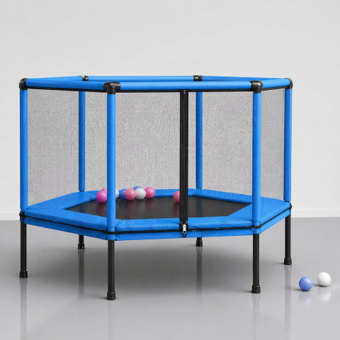 Шестикутна форма каркаса рівномірно розподіляє навантаження і робить батут стійкішим у порівнянні з класичними моделями. Це особливо важливо при активних та енергійних стрибках.
