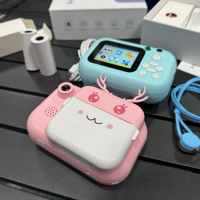 Камера оснащена подвійним об'єктивом, має функцію запису в HD 1080p, підтримує карти MMC 32G і SD, а також дозволяє робити знімки високої роздільної здатності 3456*2448 пікселів. У комплект входять три рулони паперу для миттєвого друку. прикрасити кольоровими ручками, що дає дітям свободу для самовираження. та творчості.