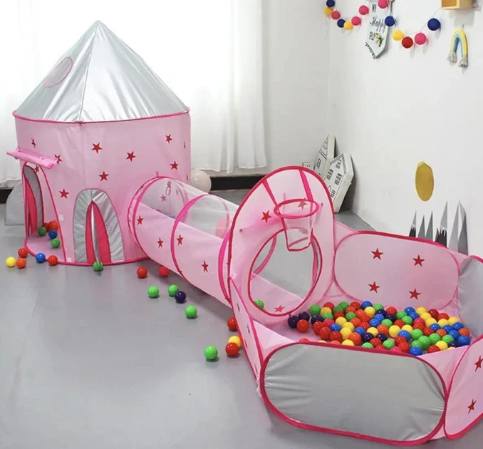 Дитячий ігровий будиночок-намет "Замок" 3в1 з тунелем та басейном під кульки