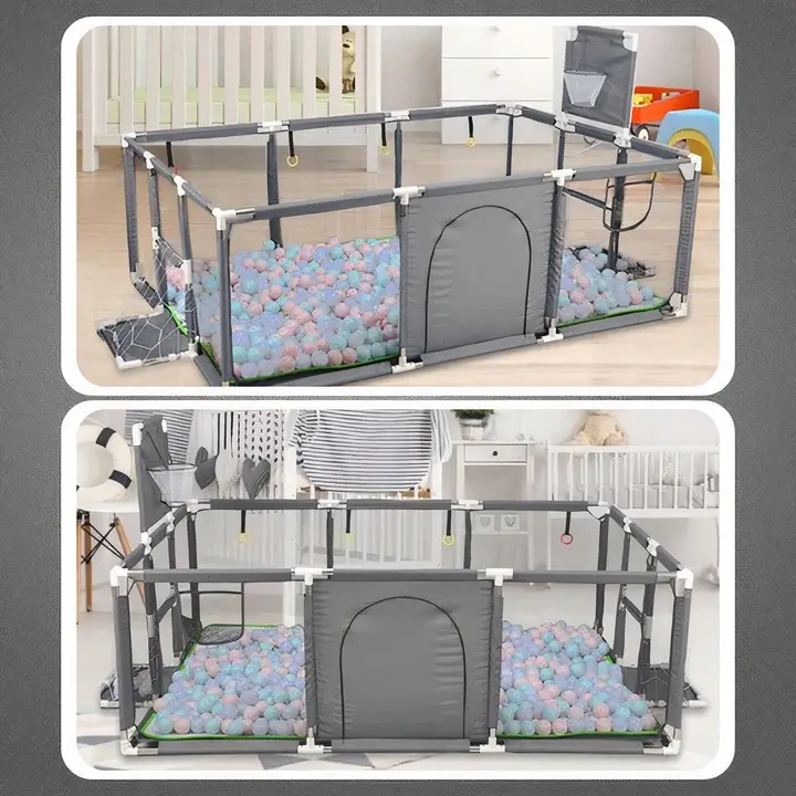 Дитячий ігровий манеж-огорожу 125х125х63см для ігор з баскетбольною корзиною та кишенею для іграшок Сірий