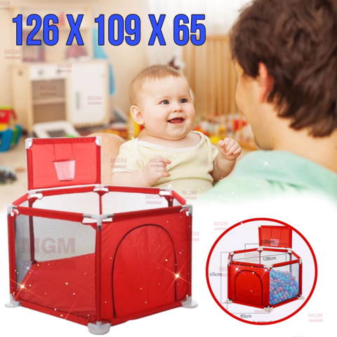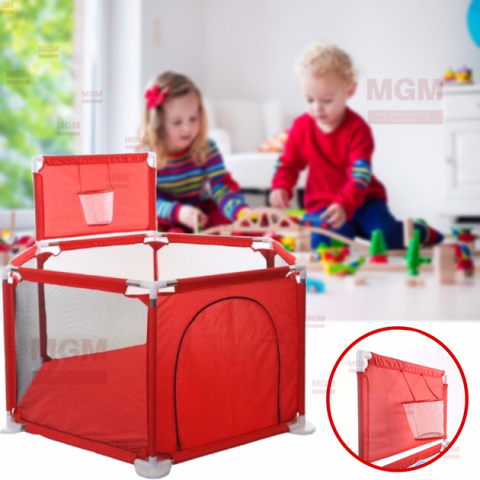 Зручний та компактний дитячий манеж шестикутної форми – ідеальне рішення для безпечної зони ігор як у приміщенні, так і на вулиці. Яскравий червоний колір привертає увагу малюка, а сітчасті стінки, що дихають, забезпечують вентиляцію і візуальний контакт з батьками. Легко складається та встановлюється, не займає багато місця.