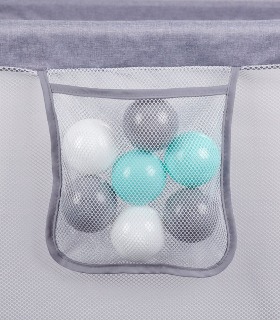 Манеж має зручну блискавку для легкого відкриття та закриття дверцят. Додатковий кошик для ігор з м'ячами збільшує ігрові можливості дитини, що робить манеж ідеальним для різноманітних занять.