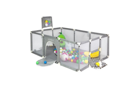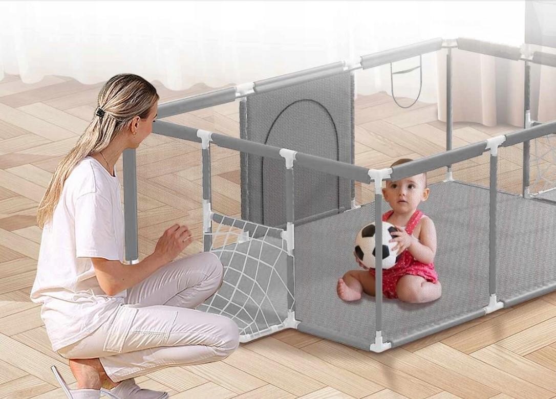 Активні ігри та розвиток навичок: Манеж оснащений двома футбольними воротами, баскетбольним кільцем та висувними воротами, що забезпечує масу можливостей для активної гри та розвитку спортивних навичок вашої дитини.