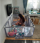 Простота та функціональність: Манеж легко складається та розкладається, займаючи мінімум місця у складеному вигляді. Це робить його ідеальним рішенням для використання у будь-якому будинку, дозволяючи швидко організувати безпечний ігровий простір.