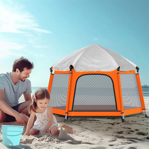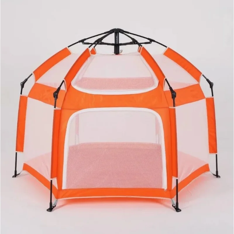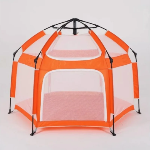Складаний манеж-намет в яскравому помаранчевому кольорі - універсальне рішення для безпечного дозвілля малюка.