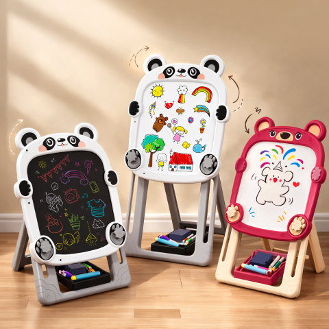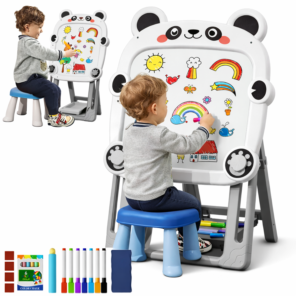 Ця дошка з подвійною рисувальною поверхнею стане незамінним помічником у навчанні та розважальних іграх для малюків. Зручна регульована підставка дозволяє налаштувати висоту дошки під зростання дитини, що робить використання ще комфортнішим.
