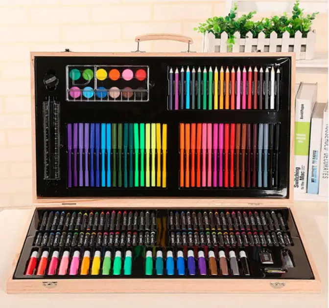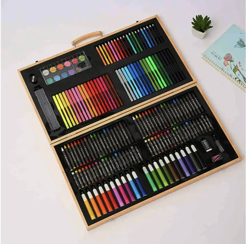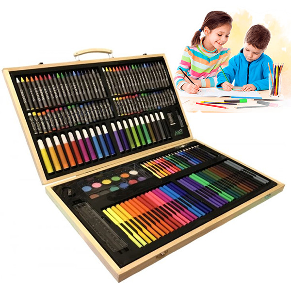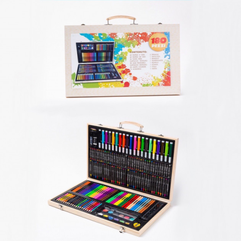 Дитячий набір для малювання та творчості 180 предметів у дерев'яній валізі