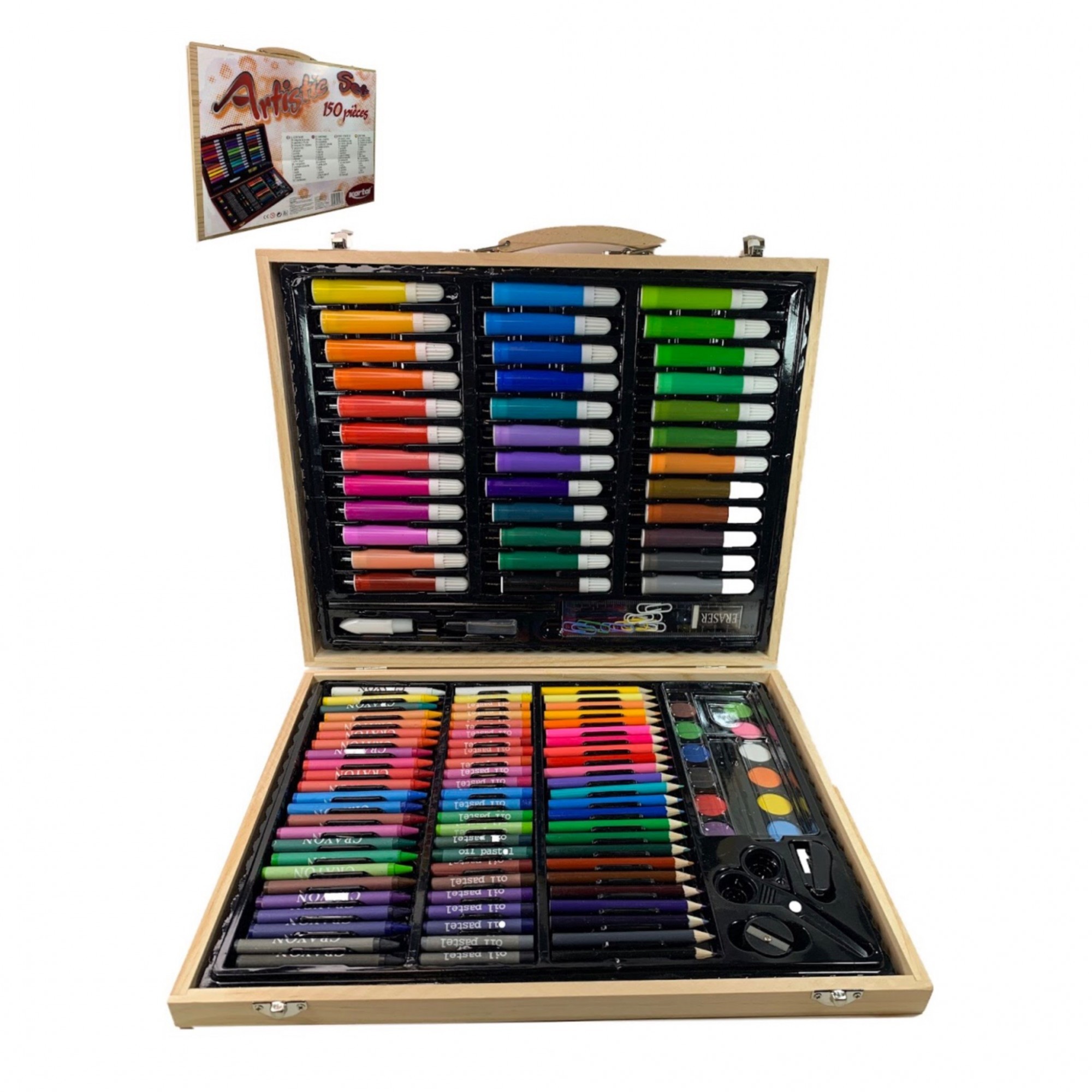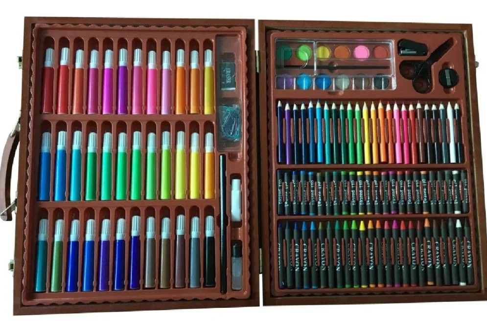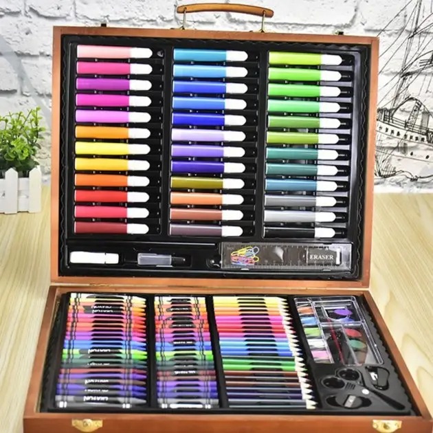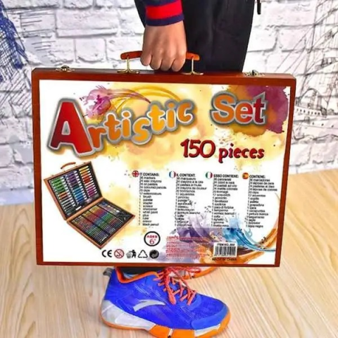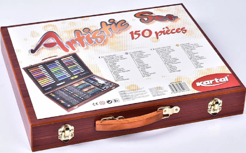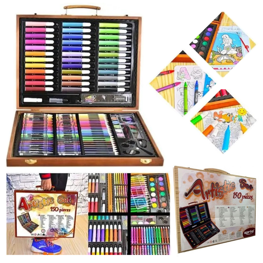 Дитячий набір для малювання та творчості Kartal на 150 предметів у дерев'яній валізі