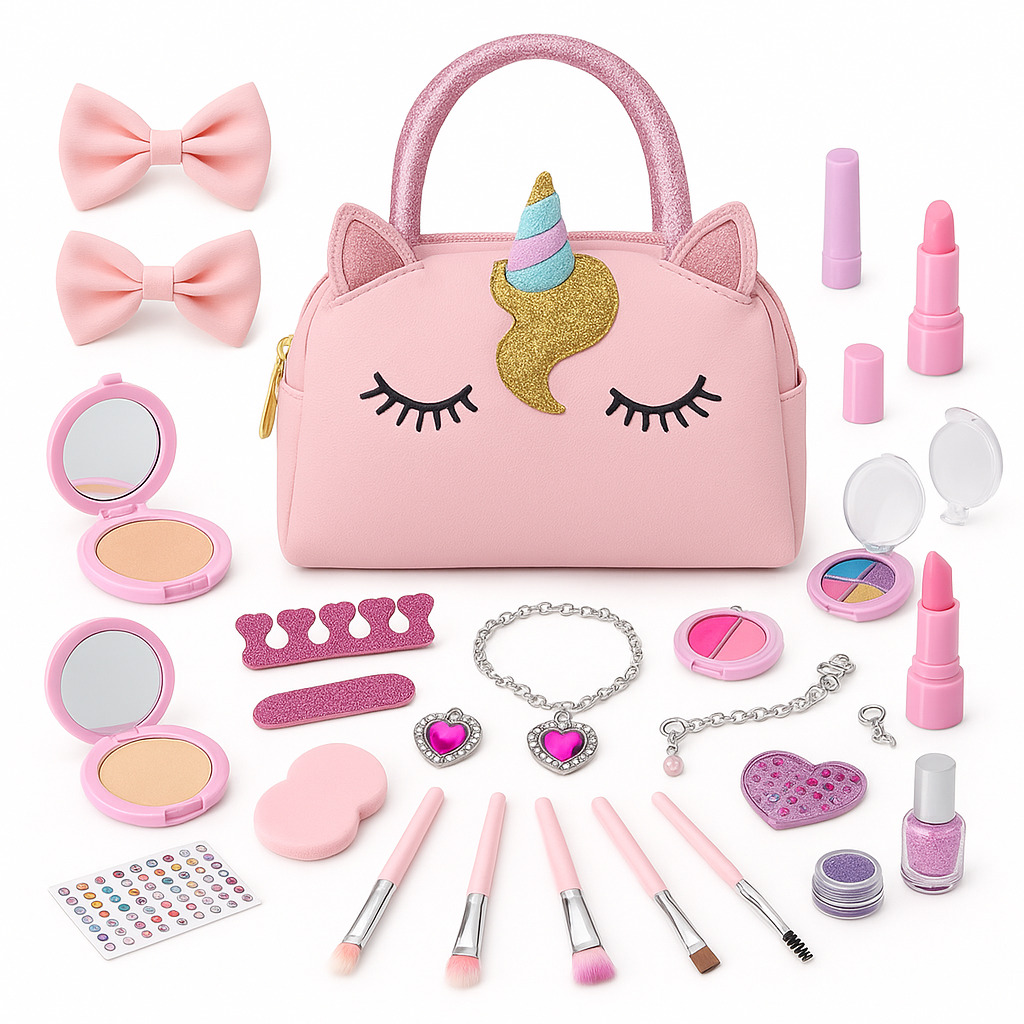 Яскравий та стильний набір у гарній сумочці з єдинорогом подарує дитині море радості та захоплюючих ігор!