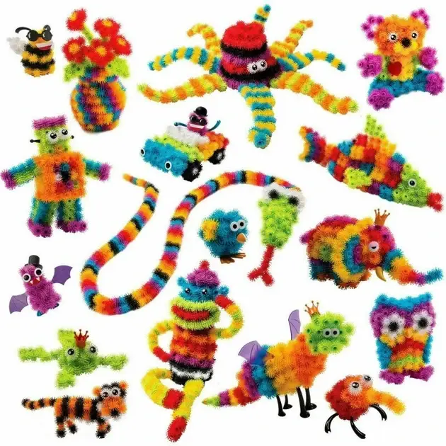 Деталі конструктора – це кульки яскравих кольорів, дуже пластичні, без запаху, зберігаючи свою початкову форму при стисканні.