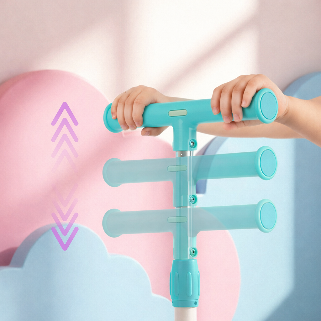 Регульована висота передньої ручки дозволяє адаптувати самокат до зростання та статури дітей різного віку.