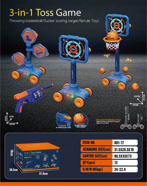 Дитячий тир 3в1 (801-17) баскетбол + пістолет + мобільна мішень