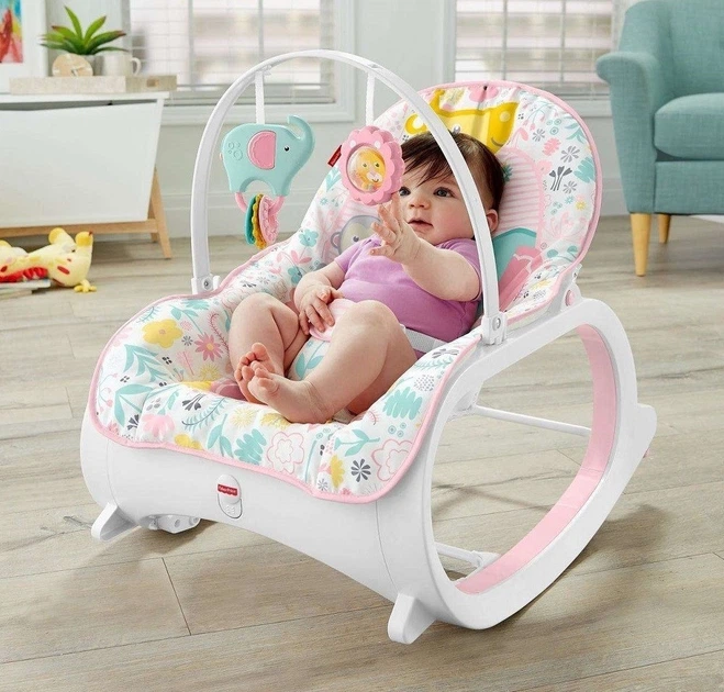 Дитяче крісло-гойдалка Fisher Price / Дитячий шезлонг з музичною підвіскою та регульованою спинкою