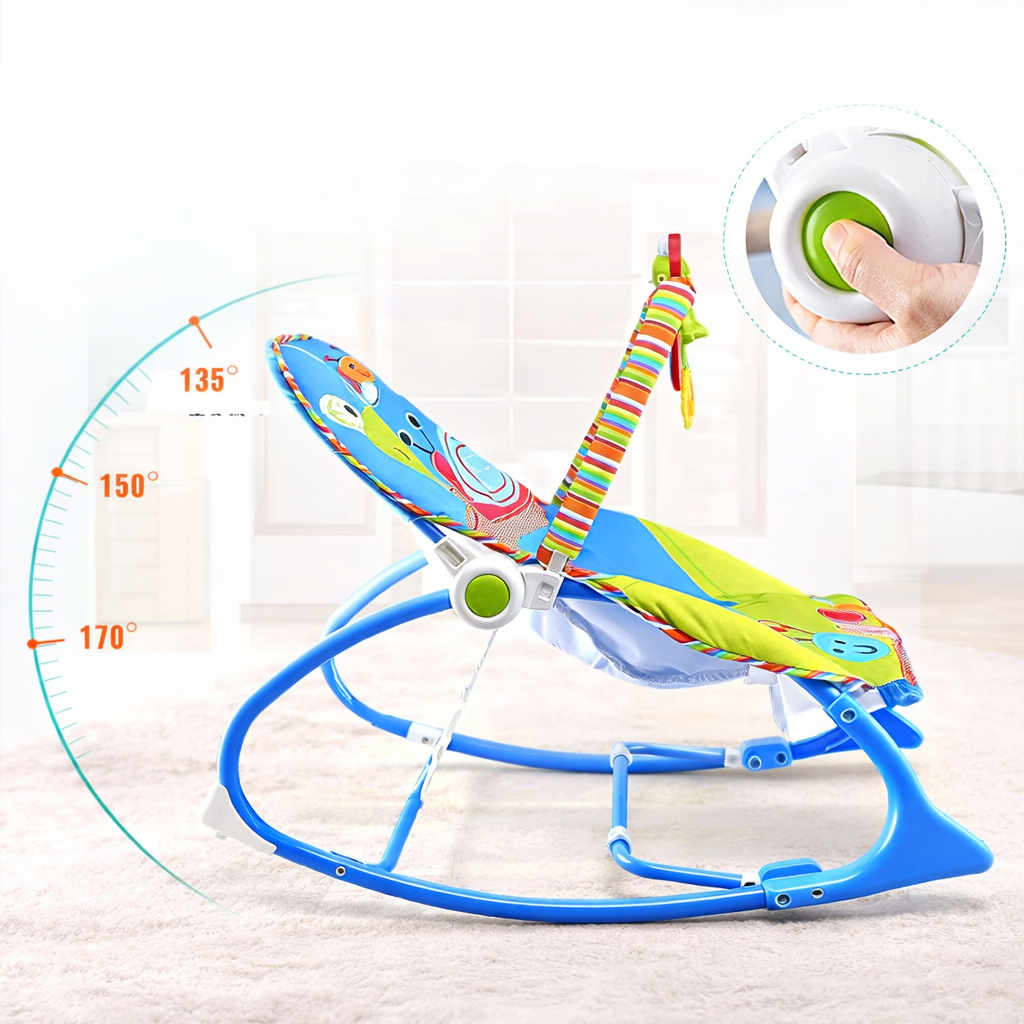 Дитяче крісло-гойдалка з вібрацією + брязкальця / Дитячий шезлонг з регулюванням положення та музикою Синій