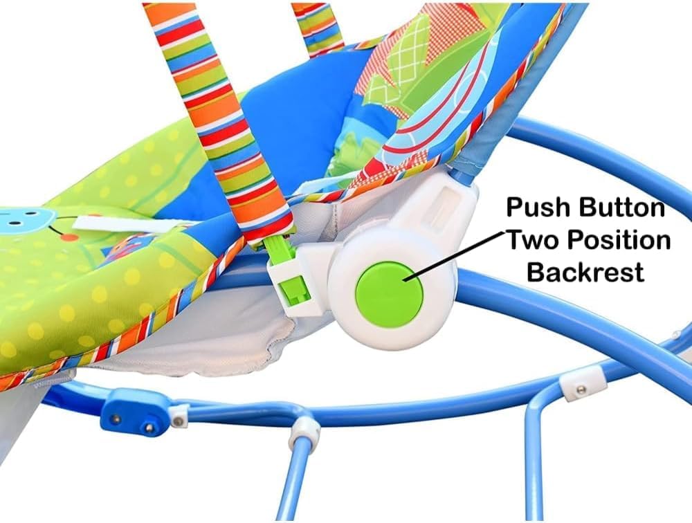 Цей шезлонг із яскравим оригінальним дизайном стане ідеальним місцем для веселих забав та солодких снів для дітей від самого народження. Просте у використанні та безпечне дитяче крісло-гойдалка отримало м'яке сидіння з анатомічною спинкою, що сприяє правильному формуванню хребта малюка. Додатково виріб оснащений масажним режимом, який за допомогою вібрації допомагає легко заспокоїти та заколисувати малюка. У комфортному дитячому кріслі-качалці малюк може перебувати у двох зручних положеннях – напівсидячи та лежачи. Перший варіант підійде для гри із підвісними іграшками. Другий варіант призначений для новонароджених або якщо дитина заснула. Текстильний антиалергенний чохол легко знімається для дбайливого прання (у щадному режимі при t30 °).