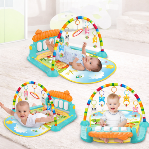 Багатофункціональний ігровий килимок Piano Fitness Rack створений для гармонійного розвитку дитини з народження. Він поєднує м’яку ігрову зону, дугу з підвісними іграшками та музичне піаніно, яке перетворює кожен рух малюка на захопливу гру.