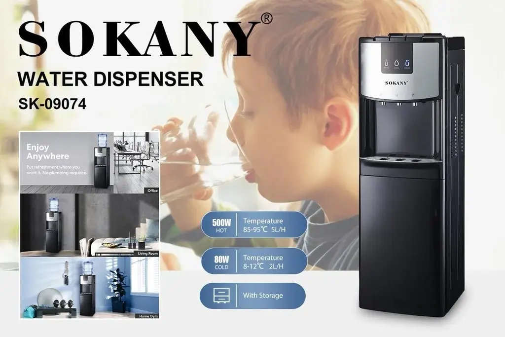 Диспенсер для води Sokany SK-09074 пропонує як гарячу, так і холодну воду.