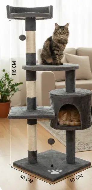 Будиночок – кігтеточка для кішок з ігровим комплексом MT04 40х40х116см