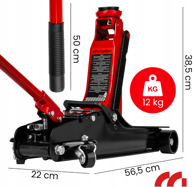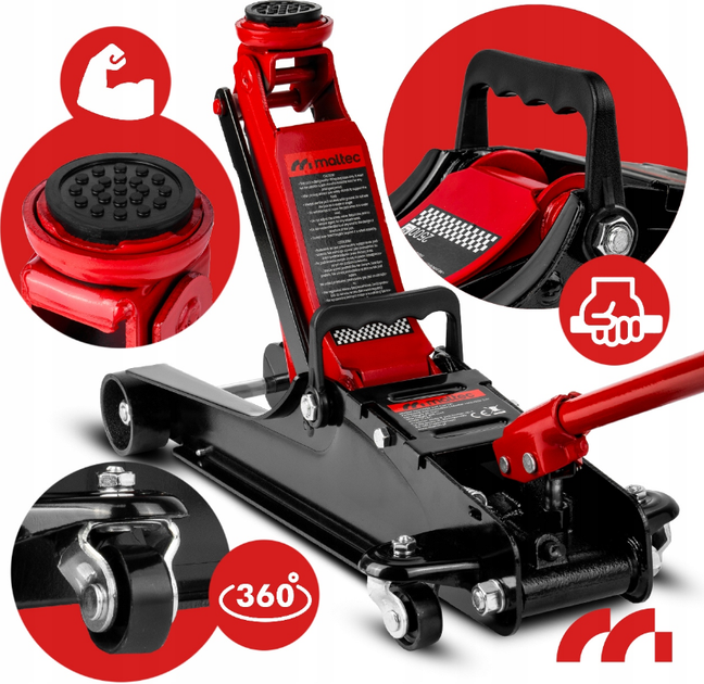 Подовжувач з рукояткою з рубіну – для зручного та надійного захоплення, що робить домкрат легким в експлуатації.
