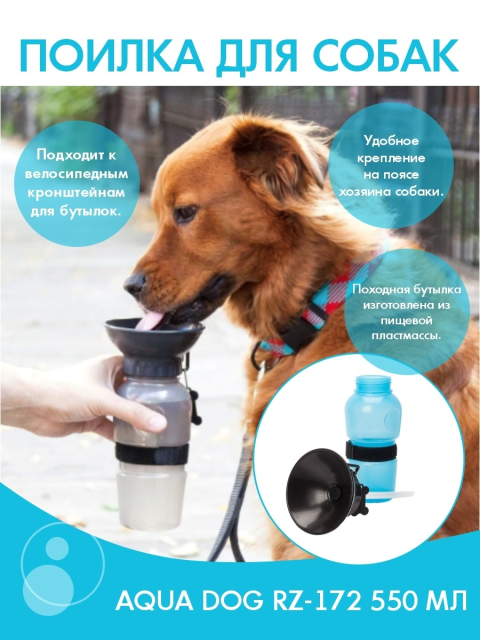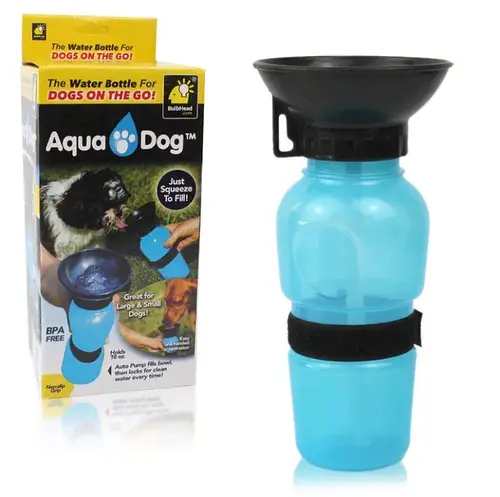 Купуючи Aqua Dog, вам не потрібно буде брати в подорож зайві предмети. Напувалка поєднує функції ємності для води та зручної миски з високими бортами. Щоб власнику було легко наповнювати пляшку водою, передбачено широку шийку, а щільна кришка надійно захищає від протікання. Внутрішній насос миттєво наповнює миску водою, причому можна регулювати кількість рідини, зменшуючи чи посилюючи силу стиснення. «Aqua Dog» гарантує, що ваш вихованець ніде не відчуватиме дискомфорту від зневоднення.