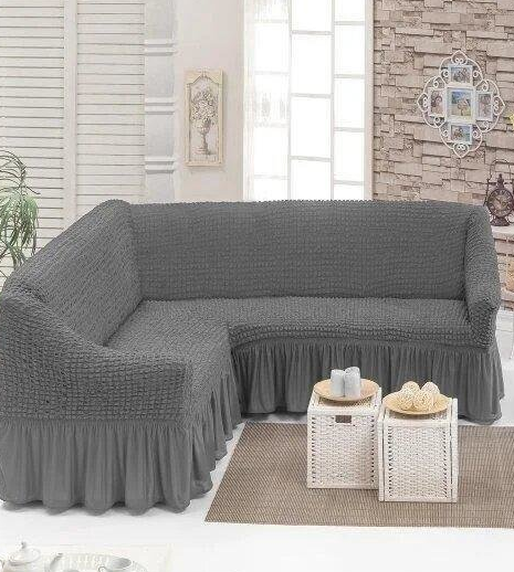 Чохол на кутовий диван з оборкою, накидка на диван