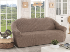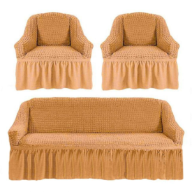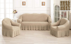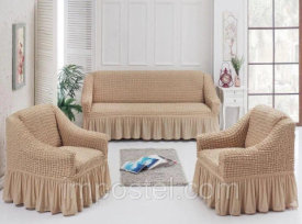 Крем турецький натяжний чохол на диван з оборкою