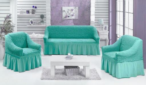 Натяжний чохол на диван і два крісла Туреччина, універсальний чохол, накидка на диван мятний