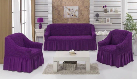 фиолетовий Натяжний чохол на диван і два крісла Туреччина, універсальний чохол, накидка на диван
