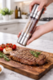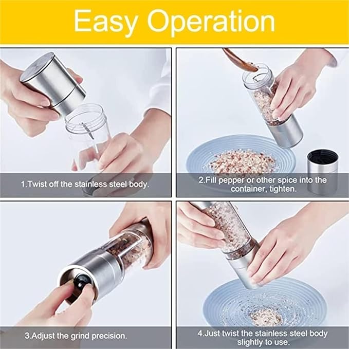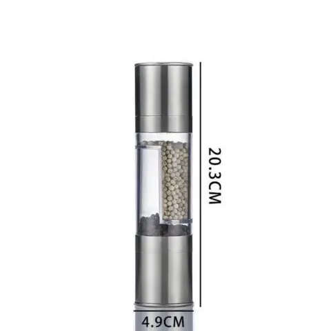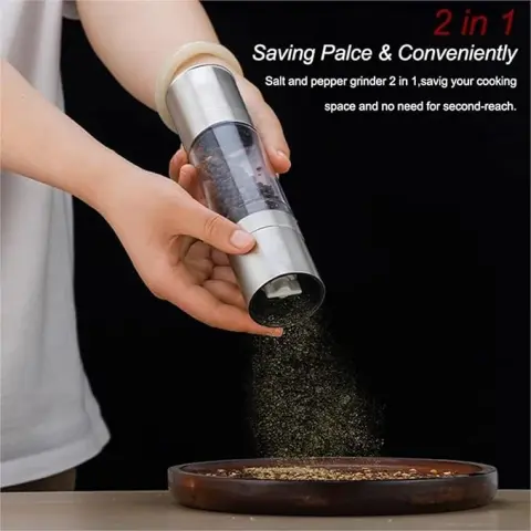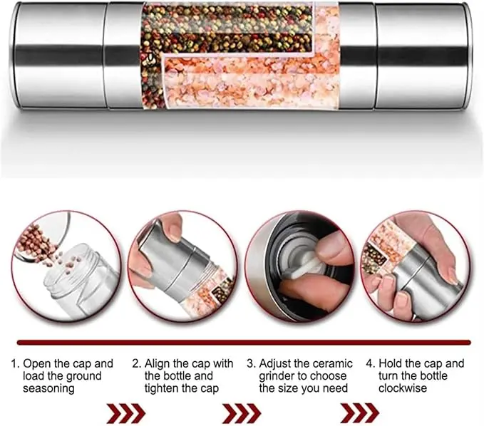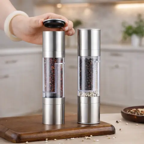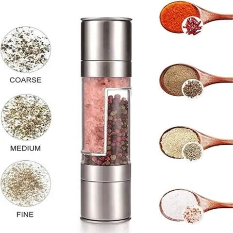 Цей набір млинів для солі та перцю має двоголовкову конструкцію, що дозволяє подрібнювати сіль та перець окремо.
