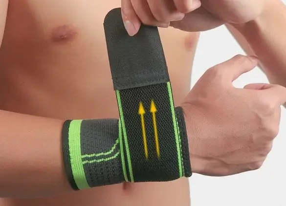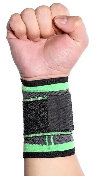 Щільне обгортання виробу навколо зап'ястя та пензля сприяє фіксації суглоба та зв'язок в єдиному положенні та полегшує жиму.