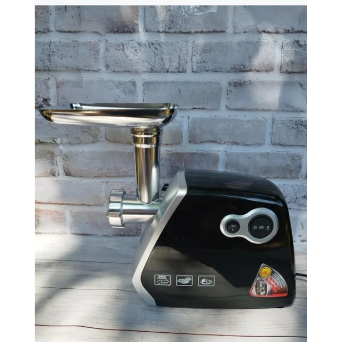Завдяки вбудованим функціям, таким як реверс та система захисту від перегріву, ця м'ясорубка забезпечує безпечну та ефективну експлуатацію. Шнек виготовлений з нержавіючої сталі, що робить пристрій стійким до корозії та забезпечує його довговічність, а гумові ніжки надають додаткової стійкості під час використання.