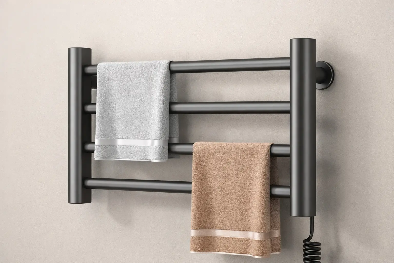 Надійний електричний рушникосушка для ванної кімнати — просте та ефективне рішення для швидкого висушування рушників та зменшення вологості. Працює без дисплеїв та складної електроніки, що робить її максимально практичною та довговічною.