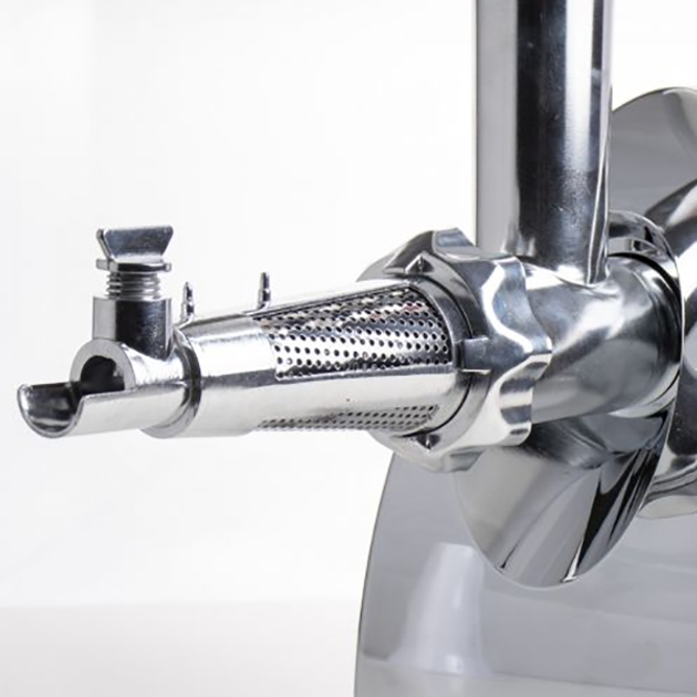 За допомогою цієї м'ясорубки можна швидко приготувати ніжніший фарш для будь-яких страв, а також сік з овочів і фруктів. Тепер Ви можете готувати із задоволенням та радувати кулінарними шедеврами сім'ю та друзів. Функція реверсу дозволяє вирішити проблему намотування жил на шнеку. Достатньо зупинити мотор, натиснути кнопку реверсу, і причину засмічення буде усунуто.