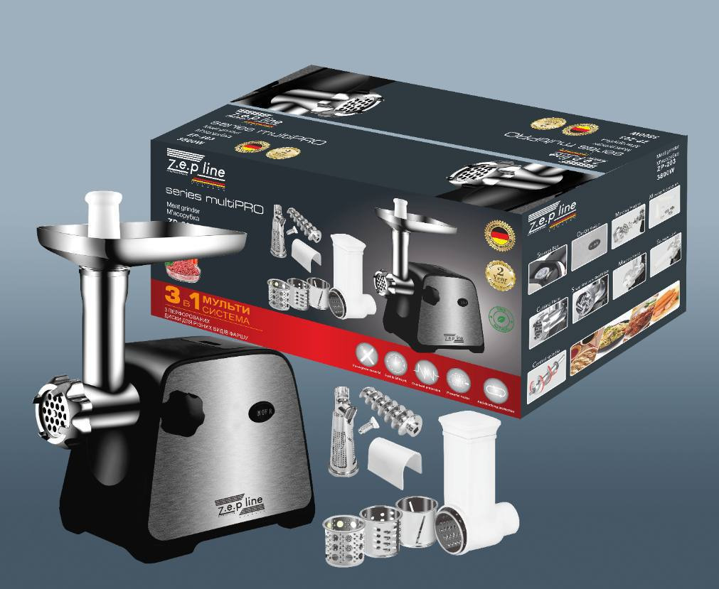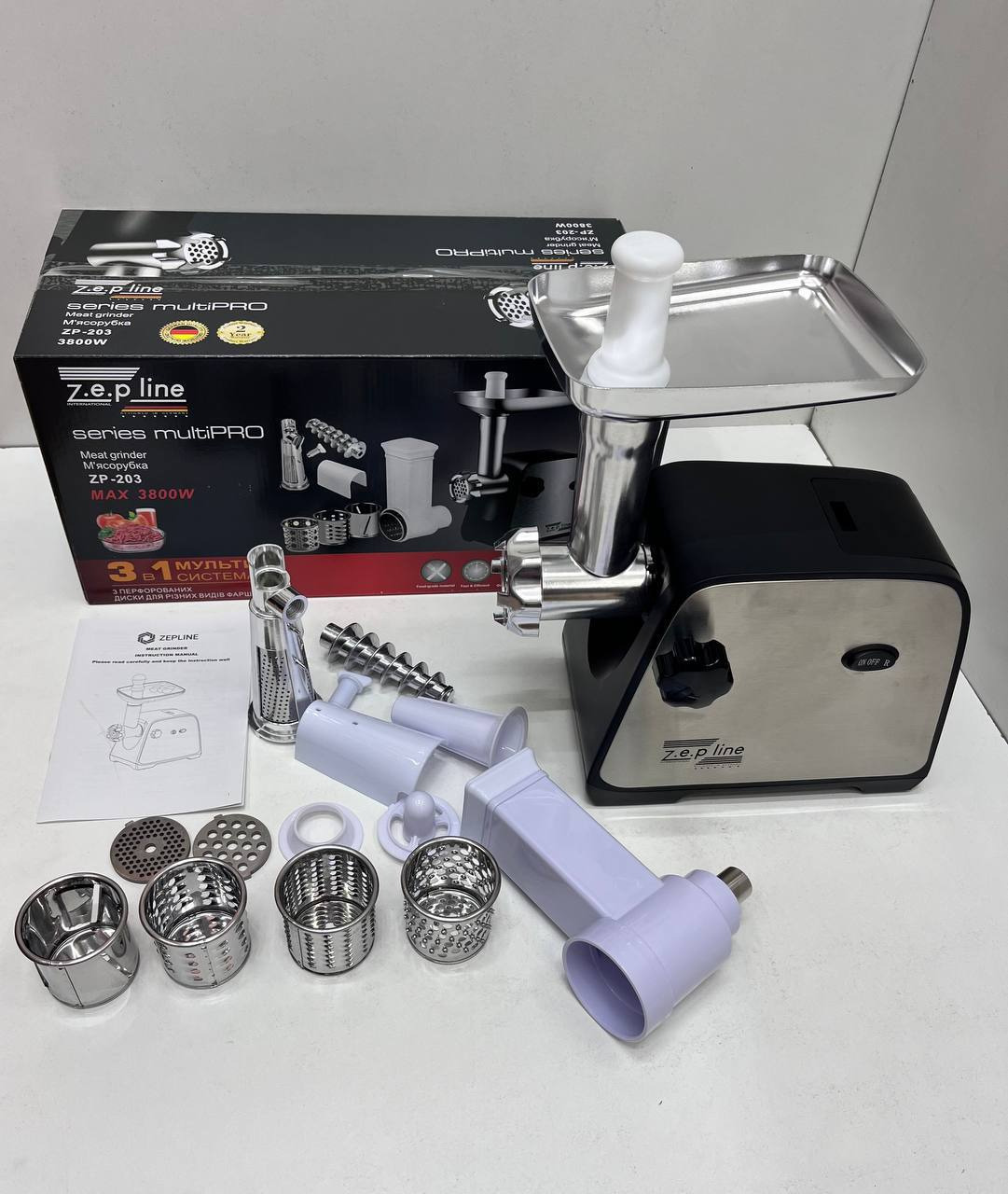Електром'ясорубка + соковитискач та з шатківницею 4 насадки Zepline ZP-203