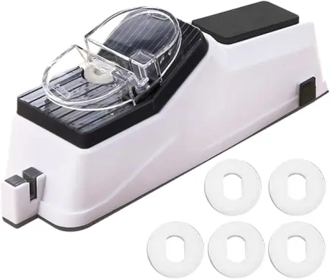 Електроточилка для ножів має сучасний та компактний дизайн, що робить її зручною в експлуатації та зберіганні. Вона також забезпечує безпеку завдяки спеціальним функціям, що запобігають випадковим травмам і забезпечують стабільність під час заточування.