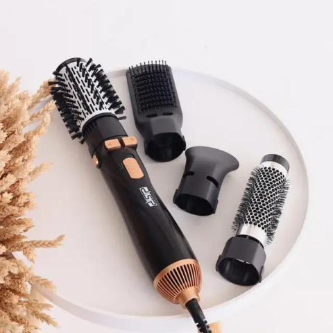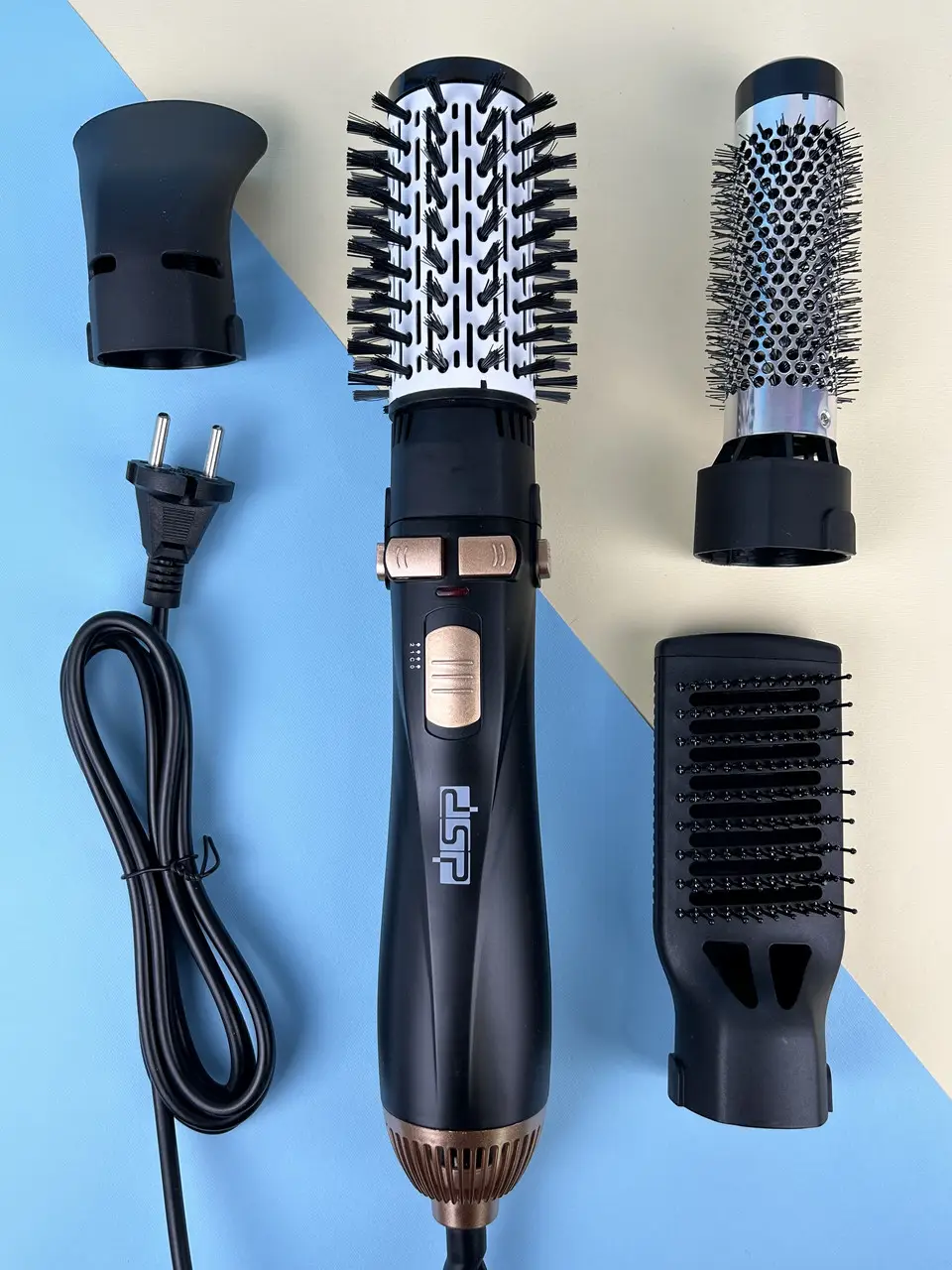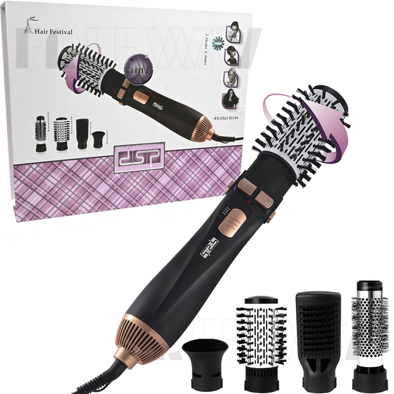 Фен щітка гребінець з насадкою, що обертається, для укладання та завивки волосся з іонізацією автоматична 4в1 DSP 1200W (50001A) - це багатофункціональна фен щітка з чотирма насадками різного розміру для задоволення ваших потреб у укладанні.