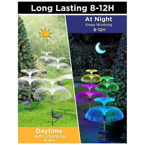 Ліхтар садовий на сонячній батареї Медуза подвійна RGB є інноваційним та естетичним рішенням для освітлення садових територій. Цей світильник поєднує у собі сучасні технології світлодіодного освітлення та відновлюваної енергії сонячних батарей, забезпечуючи екологічне та енергоефективне рішення для вашого саду. Світильник легко встановлюється без дротів завдяки використанню сонячної енергії.