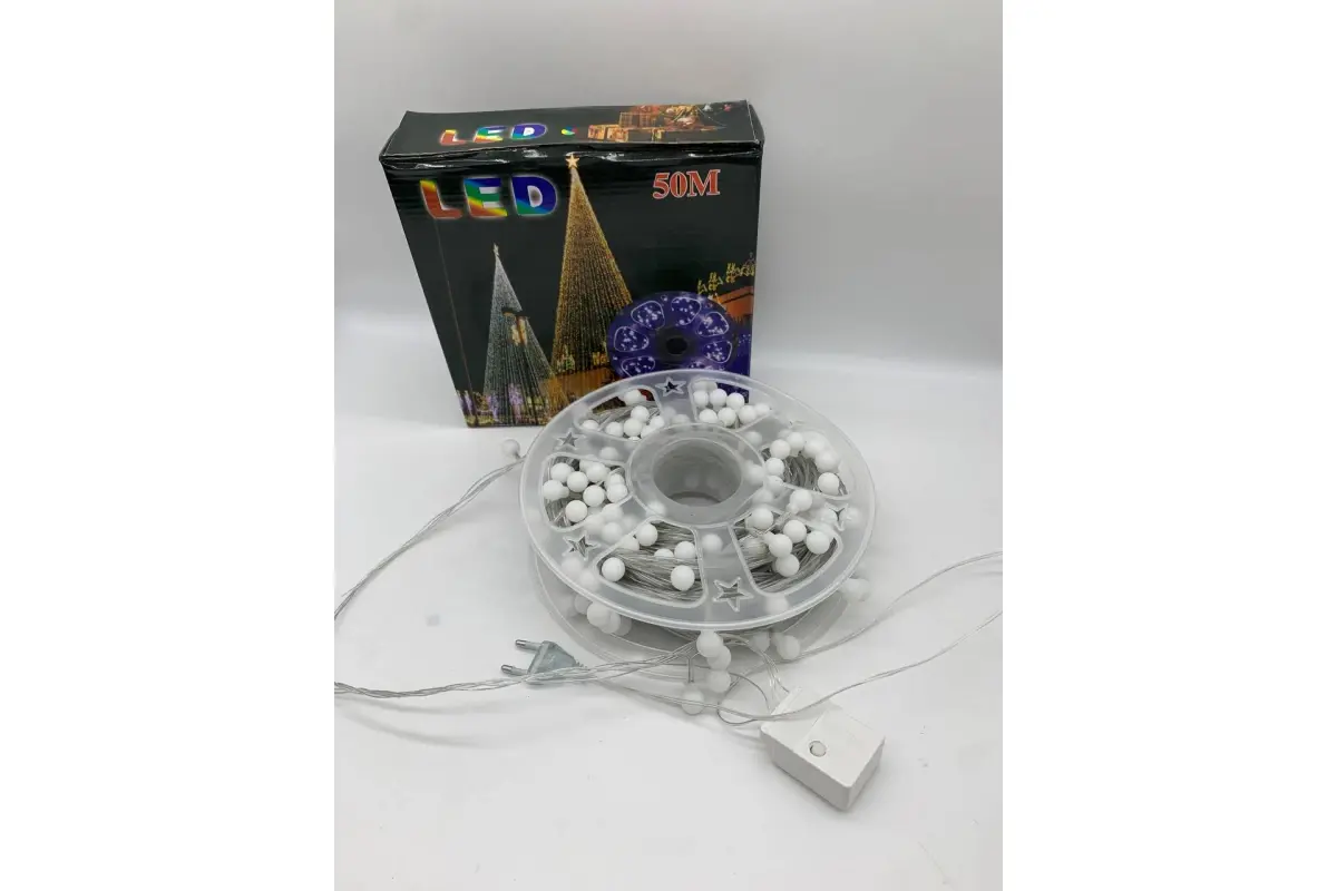 Гірлянда на котушці, від мережі, Buble 50м, 8 режимів, теплий білий/ Світлодіодна гірлянда на ялинку