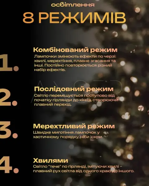 Довговічність. Світлодіоди, що застосовуються в цій гірлянді, відомі своєю довговічністю. Це означає, що навіть за регулярного використання гірлянда прослужить кілька років, не втрачаючи своїх характеристик.