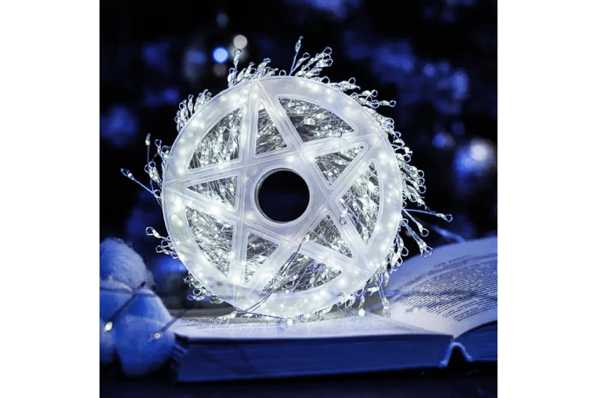 600 світлодіодів рівномірно розподілені по всій довжині, забезпечуючи яскраве світло з кутом освітлення 360 °. Така гірлянда мішура на зеленому дроті гармонійно зливається з хвойними гілками та підкреслює святкову атмосферу.