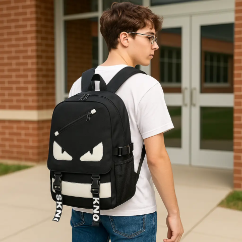 Головною родзинкою моделі є малюнок, що світиться, у вигляді очей, який робить рюкзак помітним і ефектним у темний час доби. Це не лише надає стилю ваш образ, а й підвищує безпеку під час пересування у темний час доби.