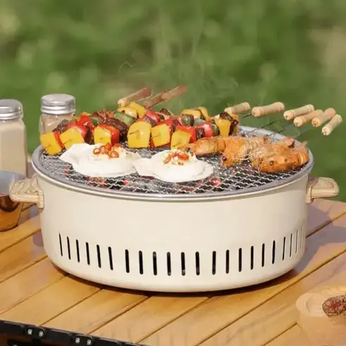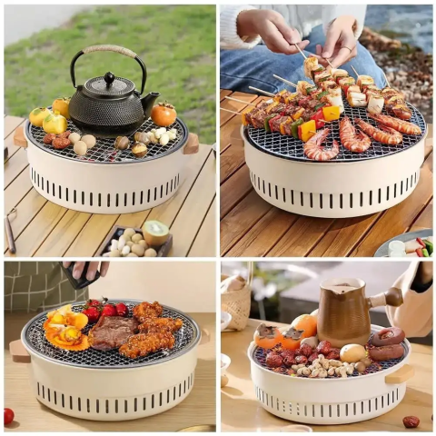 Бездимний гриль – це зручний та компактний пристрій для приготування смачних та корисних страв на відкритому повітрі чи вдома. Завдяки спеціальній конструкції він значно знижує кількість диму, дозволяючи насолоджуватись процесом приготування без зайвого дискомфорту. Решітка з якісного металу забезпечує рівномірну смаження м'яса, риби, овочів та інших продуктів. Розмір 30×30×11,5 см робить його зручним для компанії та одночасно компактним для зберігання та транспортування.