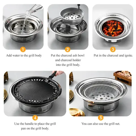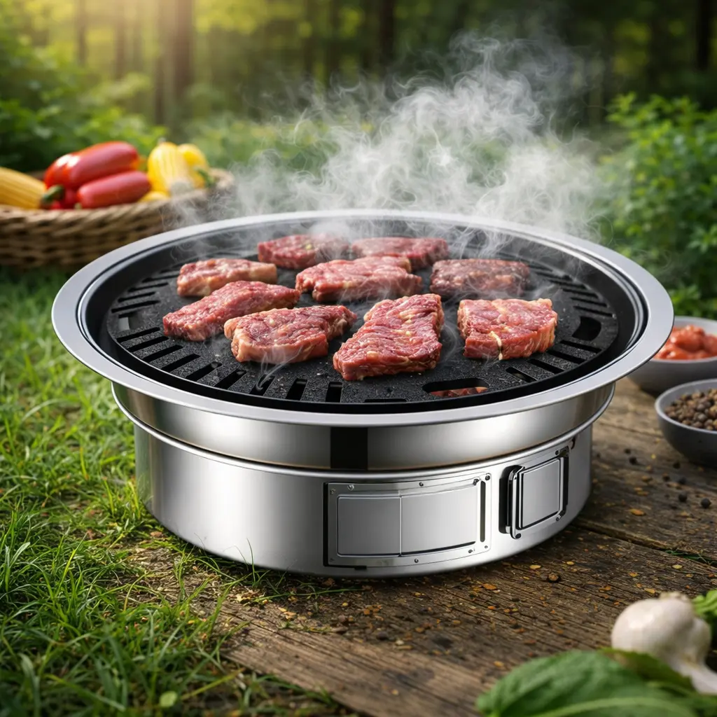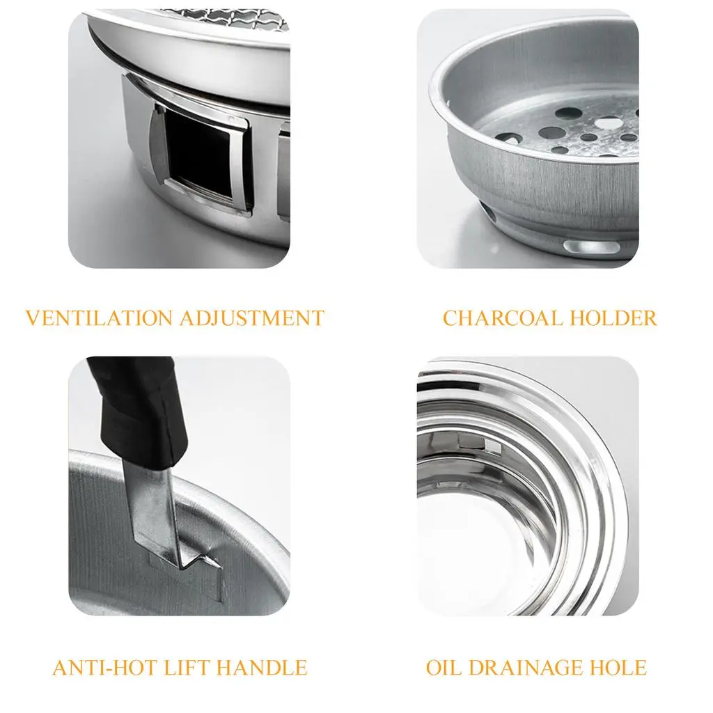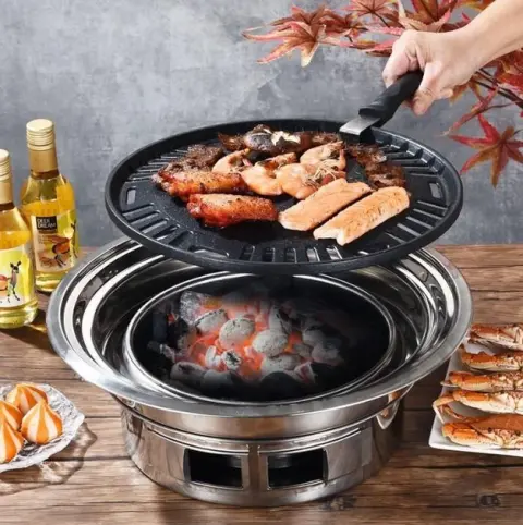 Гриль з антипригарним покриттям / Корейський гриль для барбекю / Портативна гриль-піч із нержавіючої сталі для барбекю 34 см