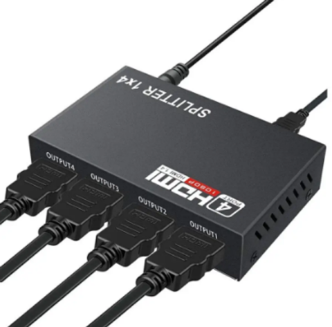Splitter 1 to 4 Black – HDMI спліттер/розгалужувач, який дозволяє використовувати його з одним хост-пристроєм (наприклад: плеєром, ігровою приставкою, ПК, ноутбуком тощо) та надсилати сигнал на чотири дисплеї (телевізор, монітор, проектор тощо). Пристрій працює без втрати якості, має компактний розмір та виконаний з металу. Коли два або більше розгалужувачів з'єднані каскадом, їх можна використовувати для більшого розподілу.