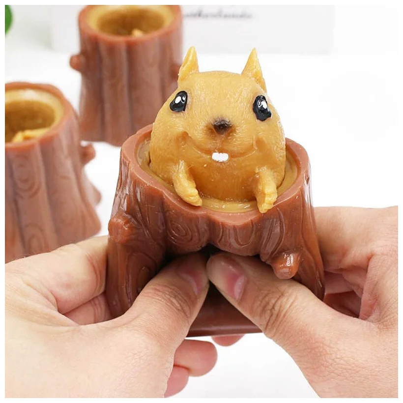 Ви напружені? Бажаєте розслабитися? Тоді добре здавіть іграшку-антистрес "Білку" і вона відразу вистрибне з пня. Ви не повірите, у цей момент, ваше напруження "як рукою зніме". Матеріал силікон, розмір пенька 6х6 см.