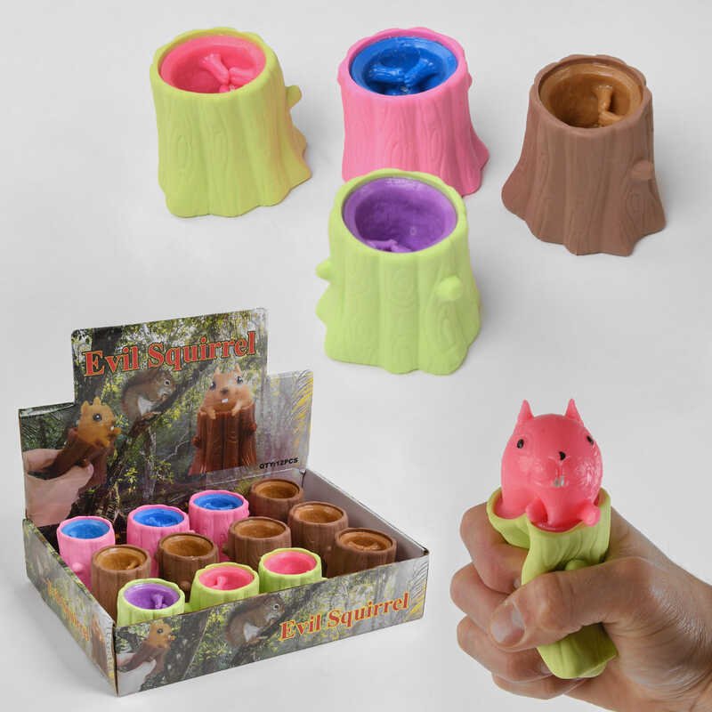Ви напружені? Бажаєте розслабитися? Тоді добре здавіть іграшку-антистрес "Білку" і вона відразу вистрибне з пня. Ви не повірите, у цей момент, ваше напруження "як рукою зніме". Матеріал силікон, розмір пенька 6х6 см.