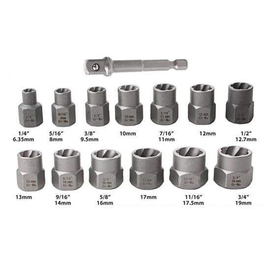 Набір екстракторів – це комплект інструментів, який використовується для видалення пошкоджених, застряглих або обламаних болтів та гайок.