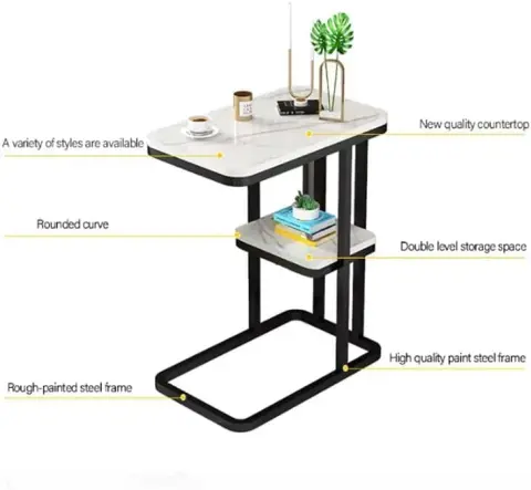 Стильний та функціональний приставний столик стане елегантним доповненням до спальні або вітальні. Завдяки сучасній C-подібній конструкції він зручно засувається під ліжко чи диван, заощаджуючи простір та забезпечуючи комфорт у використанні.