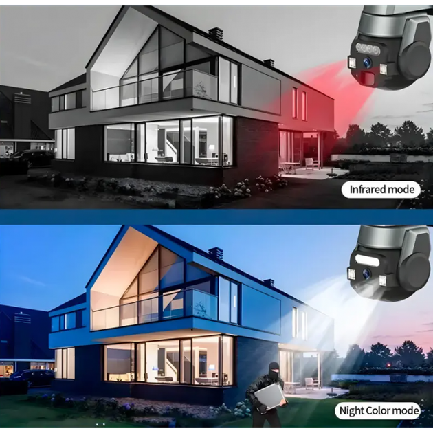 Інфрачервоне нічне бачення: камера оснащена інфрачервоними світлодіодами, що дають змогу спостерігати навіть у темряві, забезпечуючи чітке зображення у нічний час.